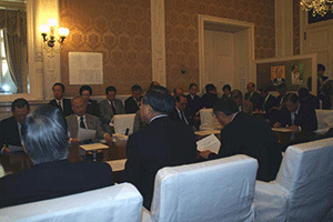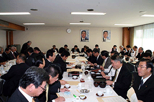 「真の地方財政の確立と地方の活性化をはかる会」の設立総会でした。石田真敏衆議院議員の司会で開会し、野田毅衆議院議員が発起人を代表し挨拶された後、中山成彬衆議院議員が座長となり規約、役員人事、今後の方針などが決定しました。