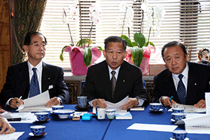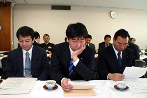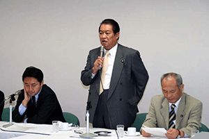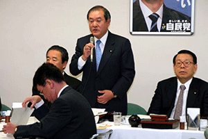 石原伸晃幹事長代理から復党問題についての経過報告がなされた後、茂木敏充筆頭副幹事長から役員連絡会の内容について報告、竹下亘副幹事長から国対報告、田野瀬良太郎総括副幹事長から和歌山県知事選挙対策について報告がなされました。和歌山知事選挙はマスコミ報道によると民主党が自主投票になったようで共産党との一騎打ちになりそう。県民には官僚出身候補者に対してアレルギーがあるのではないかと、私たちは心配していますが、責任を持って推薦する知事候補者を立てて選挙戦に臨み、その懸念を払拭したいと思います。