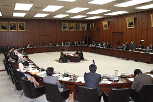 今日は15分の予定で次の議題が審議されました。@道州制特別区域における広域行政の推進に関する法律案、A地方分権改革推進法案、以上の2法案です。@については内閣委員会で審議され河本三郎委員長からその経過が報告されました。Aについては総務委員会で審議され佐藤勉委員長からその経過が報告され、いずれも衆議院本会議で可決し参議院に送られました。