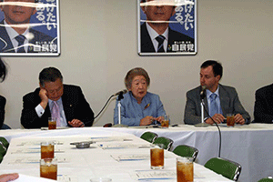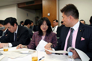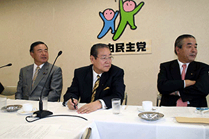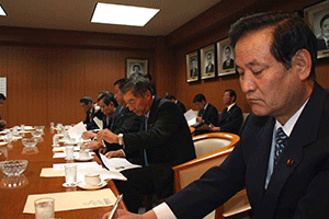 本日15:30〜16:30、党本部101号室で党改革実行本部緊急総会が開催されました。これは復党問題について平場で議員からの意見を聞きたい、開かれた対応をしたいとの中川幹事長の考えで開催されたものです。石原伸晃幹事長代理より経過報告がなされた後、議員26名から意見が述べられました。その発言内容は速記者により記録され党執行部に報告されます。26名の意見はほとんどが「復党反対」。国民は復党を認めない、なぜこの時期なのか、段階を踏まずなぜ直ちに復党させるのか、国民の理解を求める総裁の説明がない、などさまざまな意見が出されました。私は担当副幹事長として役員席に着き議員皆さんからの意見聴取に徹し、必死にメモ取りに専念しました。