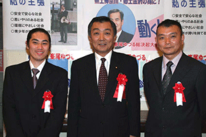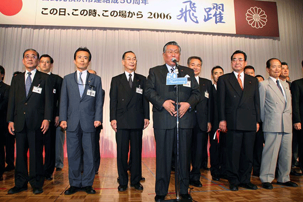 自民党が昨年結党50周年を迎えましたが、その一年後、つまり本年自民党横浜市支部連合会が結成50周年を迎えました。麻生太郎外務大臣、菅義偉総務大臣らを来賓としてお迎えし、盛大に開催されました。そして来年統一地方選挙に挑戦する公認候補予定者の皆さんの紹介や今期で勇退される議員らに感謝の花束贈呈などが行われました。神奈川1区では関貞彦市議(磯子区)、黒川澄夫市議(金沢区)、相川光正市議(金沢区)の三議員が勇退します。これまで大変お世話になった実力者ばかりです。