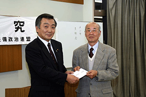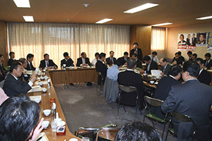 松本純地域支援団体の八八会にお邪魔しました。今日は皆さん都合が悪かったようで、出席者は少なかったのですが、元会長の島峰さんからは「復党問題」について、一体どうなっているのか、と鋭い質問が飛び出しました。我々副幹事長は党執行部の一員ですから私から個人的な考えを示すことはできない、幹事長は筋を通して復帰を認める方向だと答えると、「一度政治家が覚悟を決めた問題なのだから、復党などおかしい。絶対復党を認めるべきではない」との考え方でした。このところどこへ行っても「復党問題」が一番の話題になります。