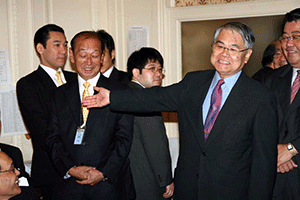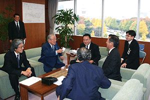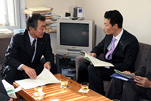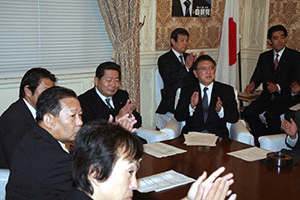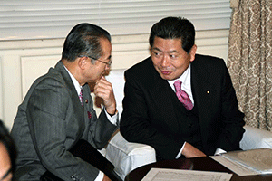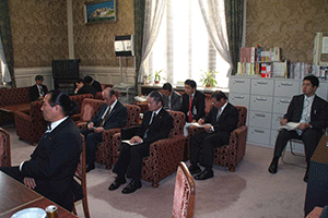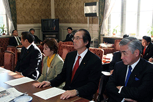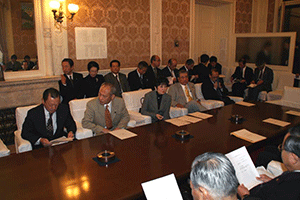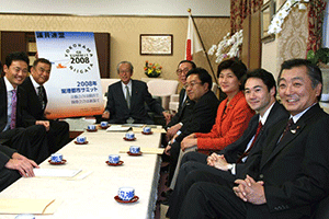 横浜市と新潟市が協力し、首脳会議は横浜、閣僚会議は新潟、と役割分担し、2008年のサミットを誘致することを応援する超党派の議員連盟です。今日は午後3時に官邸で塩崎官房長官に、午後3時30分に外務省で麻生外務大臣に、そして午後4時20分に尾身財務大臣に誘致決定に理解をいただきたくお願いに行きました。平成18年度ですから、来年の3月までに決定される運びと聞いていますので、今日行う要望活動は大変重要です。