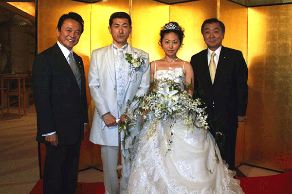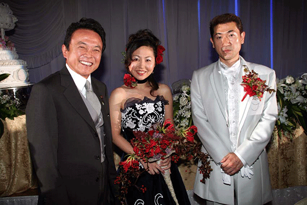 今日の本命は赤間二郎さんと金子まみ子さんの結婚披露宴です。麻生太郎大臣と共に会場に到着しました。赤間二郎代議士は神奈川14区相模原市選出の衆議院議員ですが、政治家の皆さんをお招きしての披露宴ですから、会場はみなとみらい21地区にあるインターコンチネンタルホテルで開催されました。政治家とわかっている新郎を選んだまみ子さんはすごい。お二人の幸せは「選挙に当選し続けること」しかありませんね。赤間さんは期待される星でもありますから、まみ子さんの協力を得て、さらに大きな政治家に成長することでしょう。おめでとうございました。