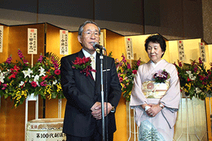 トマス先生からは、「もう一世紀の4分の3も生きてきました。50年以上前、横浜修道院の窓から見る風景は、目の前に沼、カエルの天国でした。隣の山を削って沼を埋め、学校を建て、1期生179名を迎えて聖光学院はスタートしました。その後、聖光に入学した学生が現在43期。聖光学院が発展してきたのは、社会人になっても頑張ってくれたお陰です。卒業生の皆さん、ありがとう!」と挨拶がなされました。