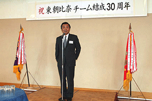 東朝比奈ソフトボールチームの結成30周年記念祝賀会が横浜テクノタワーホテルで開催されました。配布された資料には昭和52年度の対戦成績から今までの記録がすべて記載されており、当時は「三信チーム」と呼ばれていたそうです。来賓としてお招きいただいた私からもお祝いの挨拶を述べさせていただきました。松本時夫監督を中心にチームがさらに発展、ご活躍されるよう期待しています。