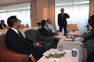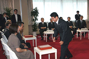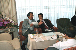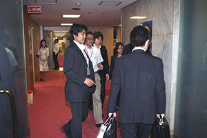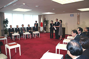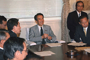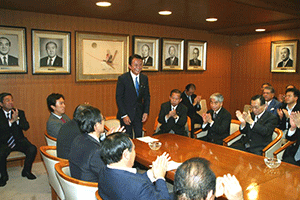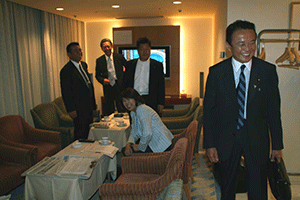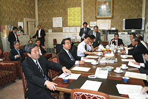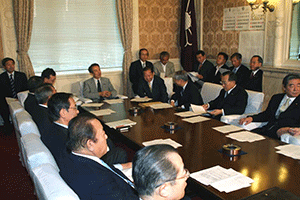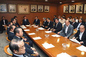 南関東ブロックというのは千葉県、神奈川県、山梨県の三県で構成されています。午前8時35分に党本部のリバティー第4会議室に到着しましたが、あらら、既に会議は終了していました。浜田靖一会長に今日の議題は何?と聞くと、「人事、人事」。あっという間に決定した人事は次の二件。南関東ブロック両院議員会の会長は菅義偉衆議院議員に、またブロック選出総務(2名)の選出については堀内光雄衆議院議員、浜田靖一衆議院議員に決定しのことでした。