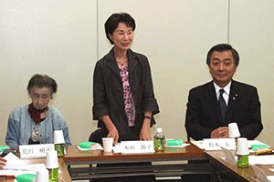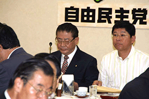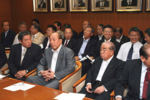 朝9時から始まった安倍総理参加の役員会を終えて、引き続き役員連絡会が10時から開会されました。麻生太郎幹事長からの挨拶は、まず始めに遠藤農水相の辞任に触れ、さらに厳しくなった国会運営に対し党・官邸・院の三者連携を密にし取り組んでいこうと呼びかけられました。また玉澤衆議院議員本人の意思を尊重し離党を受け入れること、そして参院選大敗を受けて地方組織の建て直しに努力していくことが述べられました。