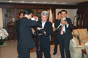 幹事長室には次から次へとリクエストが飛び込んできます。新たに麻生太郎幹事長が誕生しましたが、それを地元各支部に広報するために各議員が写真撮影を希望してきています。今日は二件の撮影でしたが、短い時間で効率よく行われました。安倍 晋三総理大臣・麻生太郎幹事長を大いにPRすることにより、党本部と地方組織が一体となって地域支部活動の活性化が図られることを期待しています。