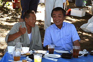 引き続き三艘浅間神社秋季祭礼神事にお招きいただきました。小高い山の上に神社があり、その境内には町内会の皆さんがお手伝いする模擬店がビッシリ並んでいます。各イベントに群がる子供たちの目はキラキラと輝いていました。神事が終了した後、町内会館に移動し、直会に移りました。聖光学院の先輩でもある佐野宮司らと近況についておしゃべりしましたが、皆さんから安定した政治をしっかり取り戻せと激励されました。