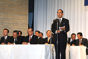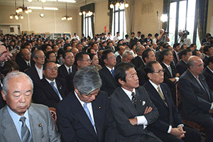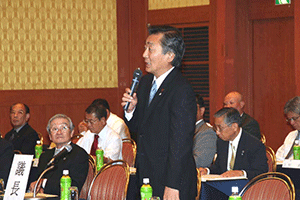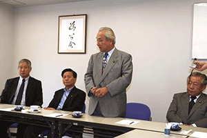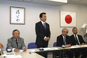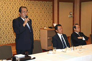 麻生太郎会長は幹事長職にある間、為公会を離脱しなければなりません。超派閥で党務に専念しなければならないことがその理由です。そこで中馬弘毅座長が会長代行として今後の為公会の運営を担います。しかし、今日は中馬代行が欠席のため、鈴木恒夫副会長が代表挨拶 をしました。大きく分けて三点について述べられ、@この度の人事について触れ、幹事長の立場で為公会だけに配慮することは出来ず、皆さんが満足する立場を得ることが出来なかったかもしれないが、幹事長室・国対・政調担当の皆さんには 人事にご尽力いただき感謝する。幹事長は見事なスタートを切ったと思う。A10日から臨時国会が始まるが、想定外のことが起きている。参議院・衆議院のねじれ現象の中で、 今後も何が起きるか分からない状況にあるので、心して国会運営に取り組んでいこう。B国会開会中は例会を木曜日に開催する。そこで意思疎通を図り、怠りなく日本の将来を見据えたオーソドックスな活動に努力しよう。と述べられました。