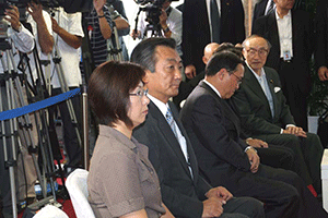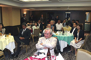 」と。そして細田博之幹事長代理の乾杯の音頭で開宴となりました。折しも台風9号が首都圏に接近してきており、外はでは大つぶの雨が風と共に地面をたたきつけています。