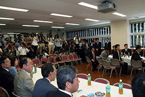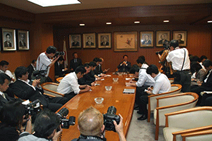 今日の昼頃、都内のホテルで麻生太郎幹事長、与謝野馨官房長官、大島理森国対委員長が会談し、今後の国会運営について協議されたようです。マスコミの皆さんから、議題は何であったかと問い合わせが殺到しました。私自身は同席していたわけではありませんので想像でお話しすることは出来ません。しかし、その後も記者の皆さんの熱心な取材が続けられ、ニュースでは「遠藤農水相辞任へ」と報道されました。
