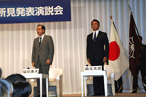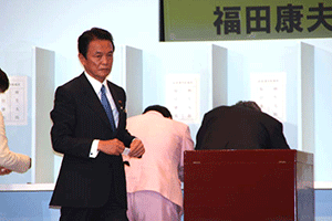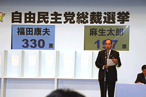 議員票は衆議院議員304票、参議院議員83票、地方票(都道府県×3票)141票で、合計528票。当日の投票では1票の白票があり、投票総数は527票でした。派閥数では8:1の闘いでしたから、派閥連合軍に対して孤軍奮闘した麻生陣営は予想に反した高得票だったといえると思います。昨夜の打ち上げでは敗戦にもかかわらず、麻生さん応援団らしく笑顔があふれる、明るく元気な反省会になりました。