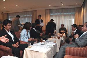 昨日開催された正副幹事長懇談会の記念写真250枚の中からピント、アングルがよいものを選択し、CDファイルを参加者全員分作成しました。その写真の様子から、幹事長を中心にした「明るく元気な幹事長室」が誕生したことを理解できます。それぞれに、どのような活躍を見せてくれるか楽しみです。麻生幹事長は人の話をよく聞きます。そして、提案はほとんど受け入れてくれます。そのうえ「結果は心配するな。思いっきりやってごらん!」と挑戦させてくれるのです。失敗したら後始末は心配するな、と付け加えて。