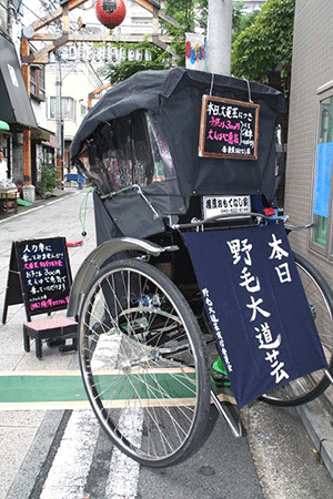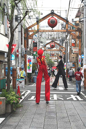 年3回開催しようと秋の大道芸が開催されました。私の事務所前の柳通りが会場になっていました。あいにくの天気でお客様はチラリホラリという状況でしたが、横浜になじみのある人力車や足長おじさんらが通りを闊歩していました。