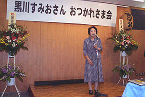結婚披露宴の入場のときのように黒川澄夫先生と奥様が会場に入っていらっしゃいました。22年間の横浜市会議員活動を今年の4月に終わり、息子の勝さんにバトンタッチしました。その間、支援されてきた後援会の皆さんから声があがり、今日の「お疲れさま会」になりました。一仕事成し遂げたという達成感が黒川先生の笑顔からにじみ出ていました。本当にお疲れ様でした。また、今後も人生・議員の先輩としてご指導を賜ることが出来れば幸いと思っています。