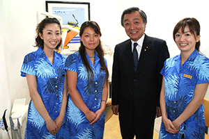 五十嵐ファミリーと受付カウンター前で記念写真