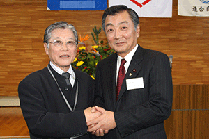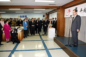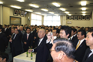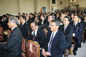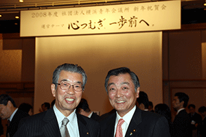 教育団体である社団法人実践倫理宏正会の元朝式が今年も盛大に開かれました。会場には400人もの会友が集まり、上廣榮治会長の平成20年「年頭之辞」が代読伝達されました。引き続き来賓を代表して私から祝辞を述べさせていただきました。 年頭之辞で上廣会長は、折々に「抱負(志)」というものをよく考えて、「今行っている倫理実践は目的ではなく、その先にある『我も人もの仕合わせの実現』を目標として日々、倫理実践一筋の日々を心から楽しんで歩を進めていこう」と訴えられました。そして現在の社会を振り返って、「嘘と、偽装と、改ざんと、偽者と、ごまかしと、不祥事ばかりが話題になりました。人は善悪の見境さえつかなくなっているかのように見えました。嘘が横行する社会、人と人との信頼関係が失われた社会は、もはや社会ではなく、確実に滅びます。」と、目先の利益を求めることの虚しさ、政治・経済・社会活動の先にある真の目標を失っている現状に警鐘を鳴らしました。