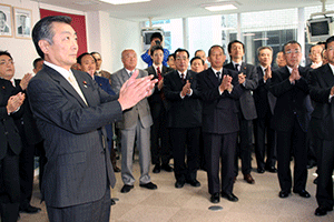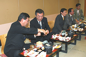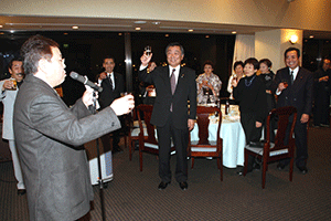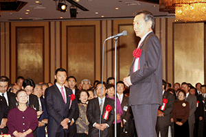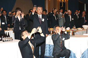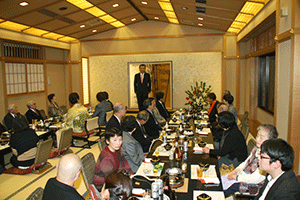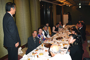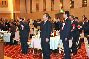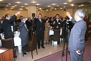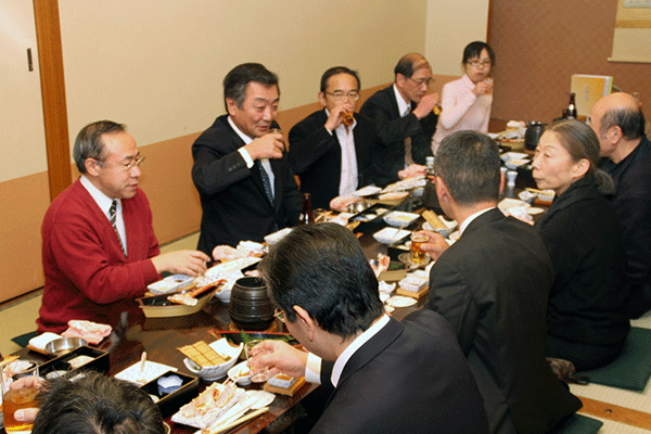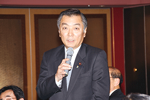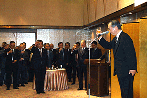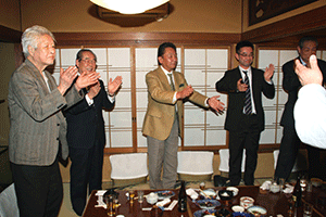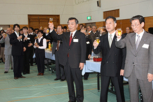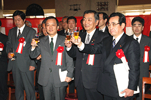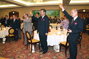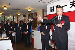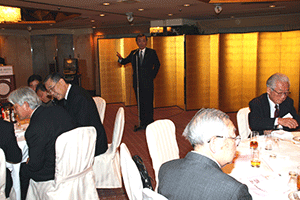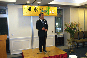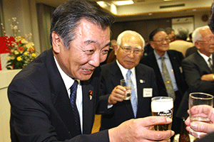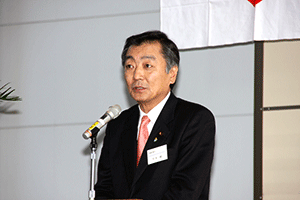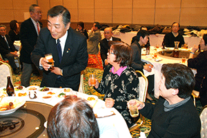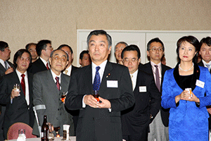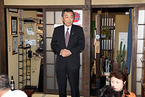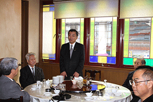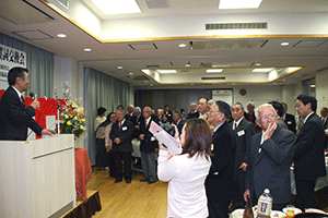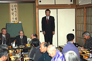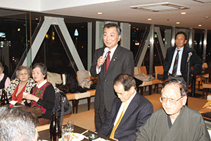 蒲谷直己会長の挨拶に続き、私からも祝辞を述べさせていただきました。また地元の国吉一夫県議から周辺の道路整備、侍従川浚渫など地元の取り組みについて報告がなされました。そして斎藤洋子副会長の乾杯の音頭で開宴となりました。