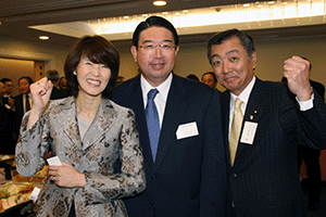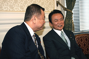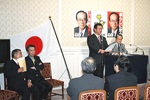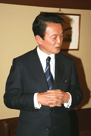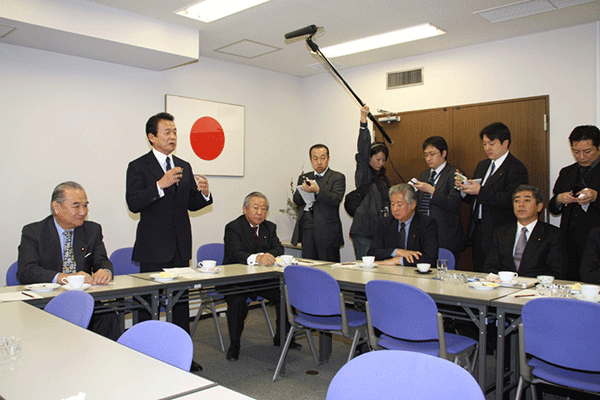 麻生太郎先生はご自身の後援会の新春の集いがスタートしたようです。友人からその様子の写メが届きました。「新テロ特措法のような迅速な結論が求められている重要な案件については3分の2条項をつかってでも再議決し決着すべきで、一方予算関連法案などについては与野党が丁寧に、しっかり協議して結論を求めるべき」との考えを示したようです。さらに第2回目の新春の集いでは、「男は何度でも勝負すると申しましたけど、何となく、負けて引き下がるのはあまりおもしろい話じゃありません。男がすたっちゃーいかんと思って、最後まできっちりけじめをつけてやらにゃいかんと、自分なりに決意を新たに、と言うと、いかにも筑豊的表現で恐縮ですが、最後までがんばることと思っております。」と決意を述べたようで、ますます意気軒昂です。