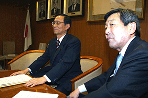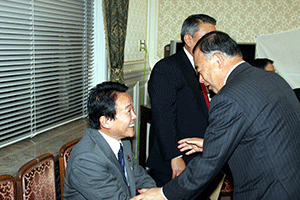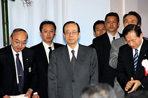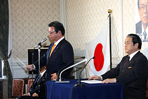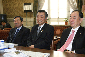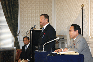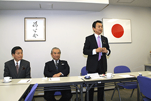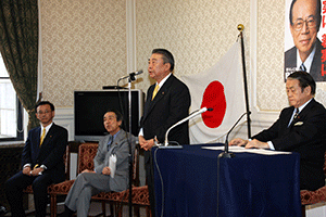 「いわゆるセーフティーネット法案が、河野衆議院議長・江田参議院議長のあっせんのおかげで、無事、衆議院本会議での採決が見送られた。両議長のご努力に心から敬意を表したい。私は最初から、外交や国防など国益に直接、影響する話を迅速にやらなければいけない時は、3分の2条項を使うのは、憲法上認められており当然であるが、そうでない場合は徹底した論議を重ねるべきだと、ずっと言い続けてきたが、結果として、こういう形になった。何が起こるかは分からない世界ではあるが、今後、常識的には、今から法案ごとに政党間協議が丁寧に行われていく段取りになると思う。その意味でも、今回の話は極めていい結果を招いたと思っており、重ねてご努力に感謝する。少なくとも、今回の場合は、先の新テロ特措法の時とは違い、党首同士だけで話し合ったのではなく、国対委員長が積み上げて、幹事長のところで決まったのは良かった。そういった意味では、大連立構想とは全然、似て非なるもので、政党間協議が、きちんと確立されていく1つのステップになったと思っている。いずれにしても国会の良識とか、国民の良識とかいろんな表現があると思うが、そういったものが最終的に示されたということだと思うので、重ねてこういった情勢をつくるために国対がご努力を頂いて、大島国対委員長は非常に苦労したと思うが、ご努力を多としたいということは、為公会の総意としてお伝えしたい。」