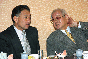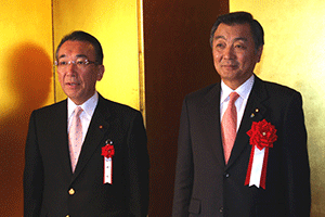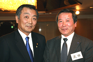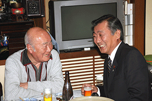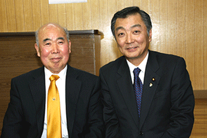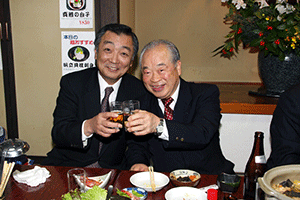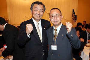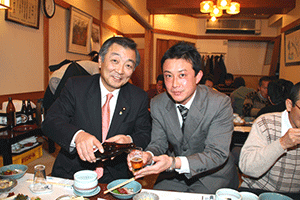瀬ヶ崎西部の新年会に遅れて参入しました。星野公一会長とツーショット。皆さんからいろいろなご意見を頂戴しましたが、相川健さんからは「最近は礼儀、感謝、節操と言う言葉を知るものが居なくなった。まさに『マナーの温暖化』だ。国で何とかしろ!」とご指摘がありました。