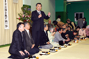 連合自治会の新年会です。増田一行会長の挨拶で、昨年は周辺道路の整備や会館建築への道が開かれたこと、そして今年は福祉保健対策について2年間検討を続けてきたが人材不足を補うために人材バンク構想に取り組みたいと抱負が述べられました。