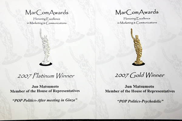 木坂さんが会館に来訪され、わざわざMarCom賞を届けてくださいました。私自身は「ネコに小判」状態だったのですが、説明を聞いていくうちに、これはエライことになったようだと理解してきました。半世紀もの歴史のある、また価値ある賞ですよこれは・・・。
