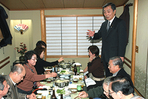 埋金理事長の話によると原油高、小麦高騰により20年ぶりに値上げに踏み切らざるを得なかったことが報告され、今後の日本の経済について大変心配されるご挨拶がなされました。また春の総会に向け理事長の交代を呼びかける話も出ましたが、私の挨拶では「もっと元気を出して、継続!」との趣旨のご挨拶を述べさせていただきました。