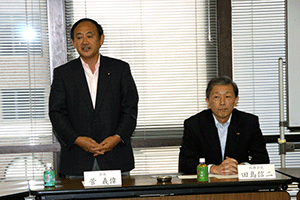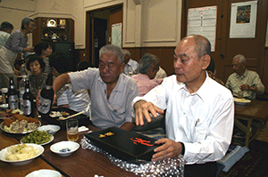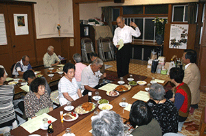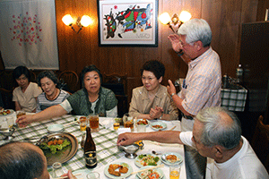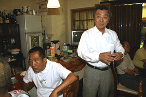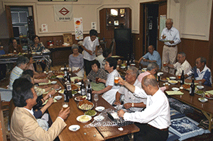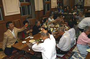 横浜市中区簑沢台の皆さんによる「二ちゃん会」の総会・懇親会が自治会館で開催されました。この「二ちゃん会」というのは村上健司県議会議員を支援する「父ちゃんと母ちゃんの会」のことです。鈴木光二さんの司会で開会され、真田俊明会長の挨拶、@前年度事業報告並びに会計報告・監査報告、A今年度事業計画、が審議され承認されました。引き続き来賓としてお招きいただいた私からお祝いの挨拶を述べ、その後村上健司県議会議員から県政報告と現在の政治状況についてお話がなされました。その中で興味を引いたお話は「神奈川県禁煙条例」についてでした。松沢県知事は神奈川県下全域、そして行政が管理する場所を越えて、喫茶店や居酒屋にまで禁煙を求めているそうです。極端な言い方をすれば、自宅の中まで喫煙しているかいないかチェックに入るという意味にもなってしまうのではないかと心配されていました。