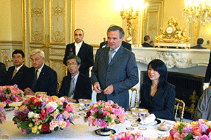 小沢鋭仁先生と合流し、19:20にホテル出発。チャーターしたバスで飯村大使公邸へ向かいました。途中街の中で目についたのは来週から始まるパリ祭の準備です。公邸に到着すると庭の豊かな緑に目を奪われました。そして19:40から歓迎夕食会と現地情勢ブリーフィングが始まりました。話題は経済と文化。ブルターニュ地方では日本からの投資が一番でキャノンなどのほかヨクモクも出てくるそうです。フランスでは日本企業の評価が大変高いとのこと。また文化においては、フランスは「発展途上国はODAで拓くが、フランスは文化で拓く」との考えが強く、国民は文化政策に投資することを当然と考えているそうです。そのフランスが日本にしかない「人間国宝・無形文化財」を高く評価しているから面白い。話題は次から次へ続きました。その後、22:00にホテルに戻り、ロビーで事務局との打ち合わせを行い、遅くならない時間に解散しました。