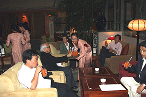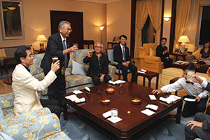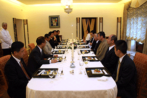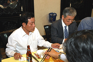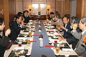 会談が終了すると、別の部屋へ案内され、歓迎夕食会となりました。その中でも会談のなかで語りきれなかったことなどについて話し合いが続けられました。
