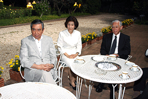 到着すると服部大使ご夫妻のお出迎えを受け、さらに先に到着されていたRachadFARAH元ジブチ大使ご夫妻、石井リーサ明理さんとも合流しました。緑豊かな広いお庭でしばしおしゃべりを楽しみ、昼食へ。話題は芸術関係からはじまり、OECDの抱える問題について議論されました。この組織については皆さんもご承知の通り、第二次世界大戦からヨーロッパ復興を目指したマーシャルプランからスタートしました。現在30ヶ国が参加していますが近々ロシアなど5ヶ国が新たに加盟する予定だそうです。日本は世界に追い付きたいと1960年頃夢中になって加盟運動を展開しました。今ではこの組織の分担金は、アメリカの25%に次いで、日本は15%。ドイツの8%に比べてもいかに貢献しているかは分かります。このOECDは、これまで農業、鉄鋼、造船などの国際ルールづくりに貢献してきました。しかし、昨今は食糧問題や人権問題などに別の組織がそれぞれに立ち上がってきており、OECDが何を担うべきなのかが、大きな課題になってきているそうです。曲がり角に立って、今後のOECDの在り方が問われそうです。