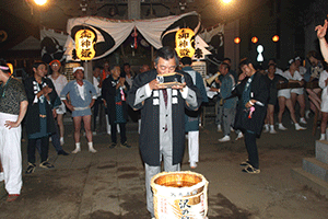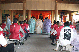 柴の熊野神社の例大祭にお邪魔しました。神事の後に各神輿に御霊入れの神事がなされました。暑い中、この何台ものお神輿の準備をするだけでも大変な準備だと思いました。すべての神事を終了して町内会館で直会が開かれ、女性役員の皆さんが心を込めてつくってくださった手料理をご馳走になりました。また、ここは漁師さんの町ですから話題は燃料高騰です。たくさんのご意見を頂戴しました。