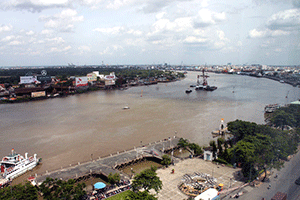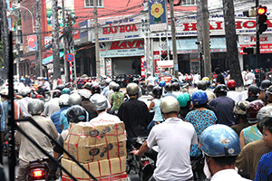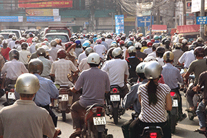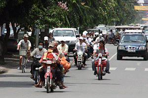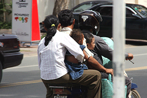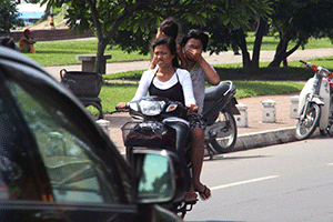 ヘルメットの着用が義務化されていないようです。信号の数は少ないのですが、大量のオートバイが信号の無い交差点でも上手に走り回っています。五人乗りで大丈夫かな〜。