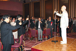 無事に中川秀直シンポジウムは終了し、会場を変えて開かれた役員の懇親会にも中川先生自らも出席され、得意の喉を披露しながら一人ひとりの役員にねぎらいの言葉をかけておられました。