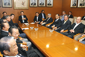 役員連絡会終了後、副幹事長会議が開催されました。林筆頭副幹事長の進行で、細田幹事長代理からは衆議院選挙準備について、幹事長室懇親会日程について、漁業等原油高に関連する対策について提案され、協議されました。