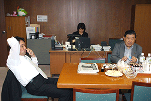 役員連絡会、副幹事長会議のために控室には役員の皆さんが集合。幹事長室の小幡さんもお世話役で大忙しです。