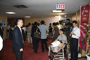 左の写真は党本部幹事長室のある4階のエレベーター前ロビーの様子です。テレビカメラや各局の記者さんらが大勢たむろし党の動きをウォッチしています。8階のリバティー会議室では、9月3日の午前中に放映されるワイド・スクランブルの取材が私にありました。総裁選挙に4回目の挑戦するであろう麻生太郎幹事長の人柄について知りたいとのことでした。30分ほどいろいろな質問があり、知る限りのお答えをしましたが、実際の放送では2,3分にまとめられるそうです。