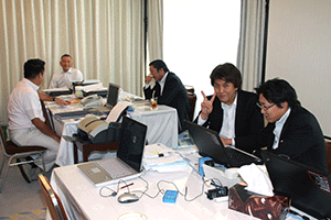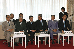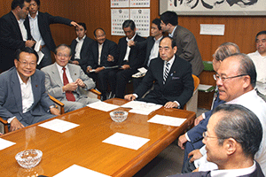 党本部の控室には時間調整の役員の皆さんが大勢集まってきました。あわただしい動きの中で、それぞれに情報交換が行われています。