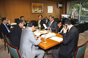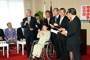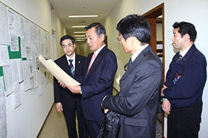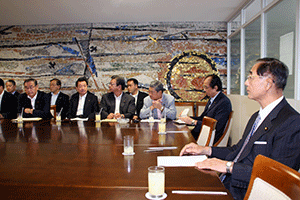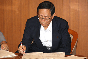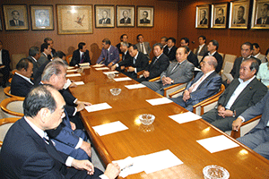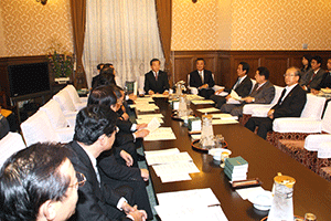 私の役目は一言でいうと、政府と国会を結ぶ連絡調整役です。国会対策委員会に陪席することは大変重要なことで、時間の許される限り出席したいと考えています。今日はこれからの本会議日程について説明がなされ、大島国対委員長からは補正予算の取り扱いについて民主党との交渉経過について説明がなされました。