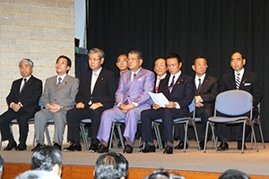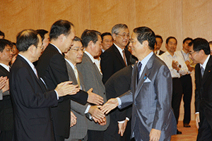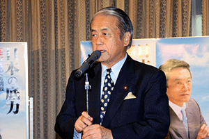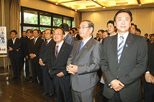大変なことになってしまいました。内閣官房副長官としての仕事とバッティングしてしまったのです。午後6時30分開会で私の次の仕事で官邸に6時50分に戻らなければなりません。そこで冒頭に私からお礼の挨拶を述べさせていただき、ご参加いただいた皆さんには来賓のご挨拶に耳を傾けていただくことになりました。ご参加の皆様、わざわざお忙しい時間にご出席いただいた来賓の皆様に心からお詫びと感謝を申し上げます。