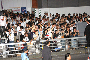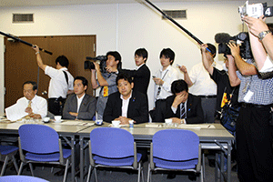 私が一番乗りだったのでしょうか、まだ正面玄関は開いていませんでした。幹事長室に向かうと何人かの職員が到着し始めていました。午後9時半の福田内閣総理大臣の記者会見が始まると、案の定「辞意表明」でした。 大島国対委員長、原田筆頭副幹事長、菅義偉選対副委員長らをはじめ党役員がぞくぞく到着されました。午後10時30分頃には麻生太郎幹事長も幹事長室に到着され、役員により今後の対応について協議がなされました。基本的な方向性が示されたところで今日は散会され、明日の役員会、役員連絡会などを通じて手続きが進められることになります。