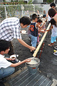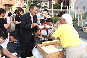 よい天気の中でたくさんの子供たちがお父さん、お母さん方が集まりました。バーベキューや流しそうめんに子供たちは大喜び。私もたくさんのご馳走と朝比奈の皆さんとおしゃべりに興じました。次回の総裁選挙に大変関心が高く、自民党の信頼回復に努力せよとの激励を受けました。