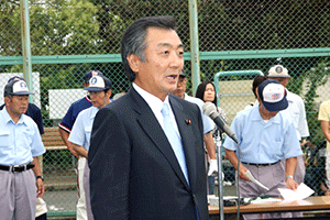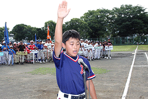 磯子区少年野球大会の第99回秋季大会開会式が洋光台の南公園で開かれました。雨が心配な天気でしたが、開会式のときは雨は上がっていました。入場行進に続き私からは激励の挨拶を述べさせていただきました。優勝旗、優勝カップの返還、そして前回準優勝の洋光台球友イーグルスの大平泰稀君の元気な選手宣誓で開会式は無事終了しました。