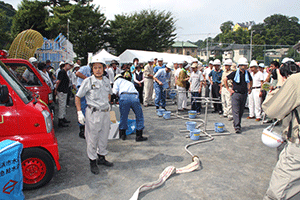 磯子区から中区へあわただしく移動しました。大鳥小学校の校庭で中区の防災訓練が実施されていました。すでに式典は終了し、それぞれの持ち場で訓練が始まっており、磯子しいところにお邪魔してしまいました。いつ何が起きても災害に対応できるようにするには、日頃からの訓練が何よりも大切ですね。しかも地域の皆さんが一つになって・・・。
