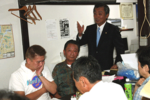 中区の伊波洋之助市会議員の後援会「七洋会」の例会にお邪魔しました。国会の様子、総裁選挙の情勢など近況について報告し、さまざまなご意見を頂戴しました。早く日本の政治が安定するようにと注文があり、責任の重さを痛感しました。