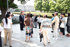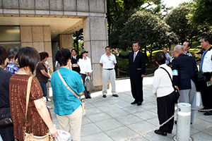 横浜市磯子区の洋光台にあるショップ27店会の望月会長はじめ会員の皆さんが国会見学に来られました。閉会中、しかも自民党総裁選挙告示前日という緊張した永田町においでいただきましたが、実際に表に見える風景は静かな国会議事堂周辺です。しかし、ここで見学されると、今後の国政の動きに興味を持ってテレビ報道などをご覧いただけることでしょう。