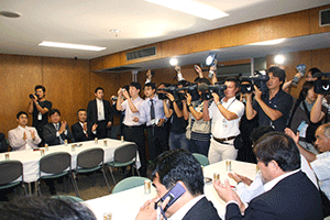 「番懇」というのは「番記者との懇談会」のことだそうです。毎週2回総理官邸で開催され、官邸の様子、総理の様子、政府の取り組みの様子などについて大勢の記者さんと懇談し、情報を公開していくことが目的になります。今日参加したのは上記にご紹介した記者の皆さんです。名刺交換と共に写真を撮り、こちらからも取材してしまいました。